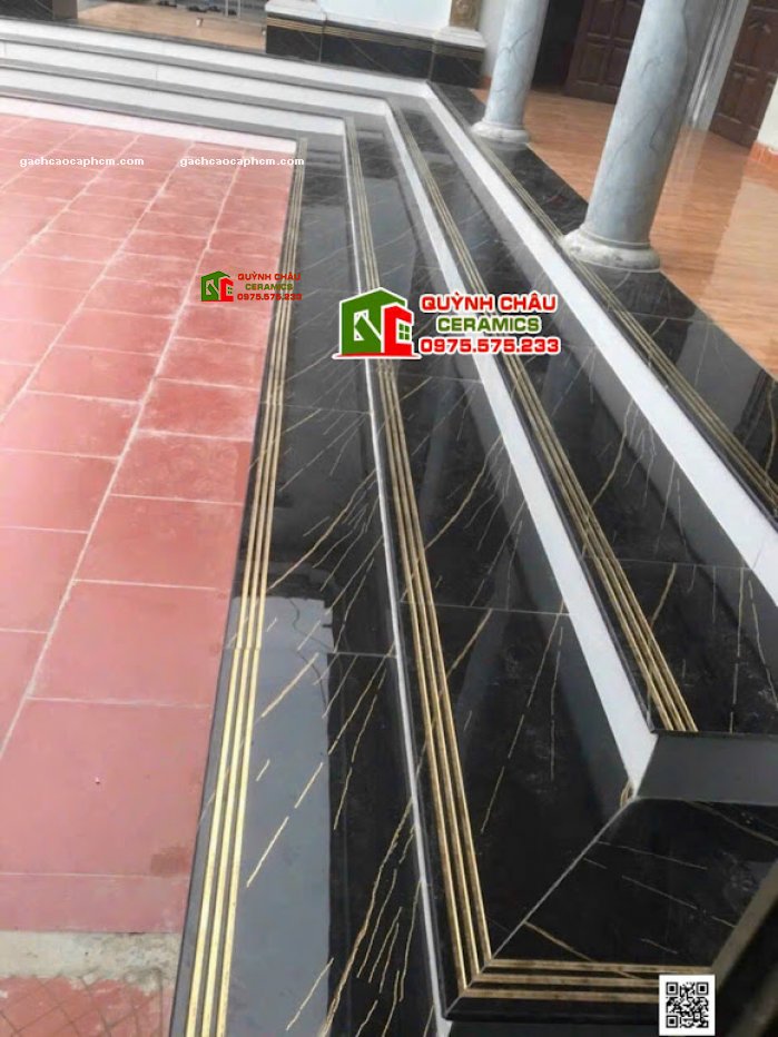 Hãy để Gạch lát cầu thang 47x120 đen khắc kim biến cầu thang của bạn thành một tuyệt tác đen khắc kim sang trọng, nơi hội tụ nghệ thuật và công năng. Liên hệ ngay để nhận báo giá và tư vấn ốp lát bậc cầu thang và tam cấp theo xu hướng mới nhất!