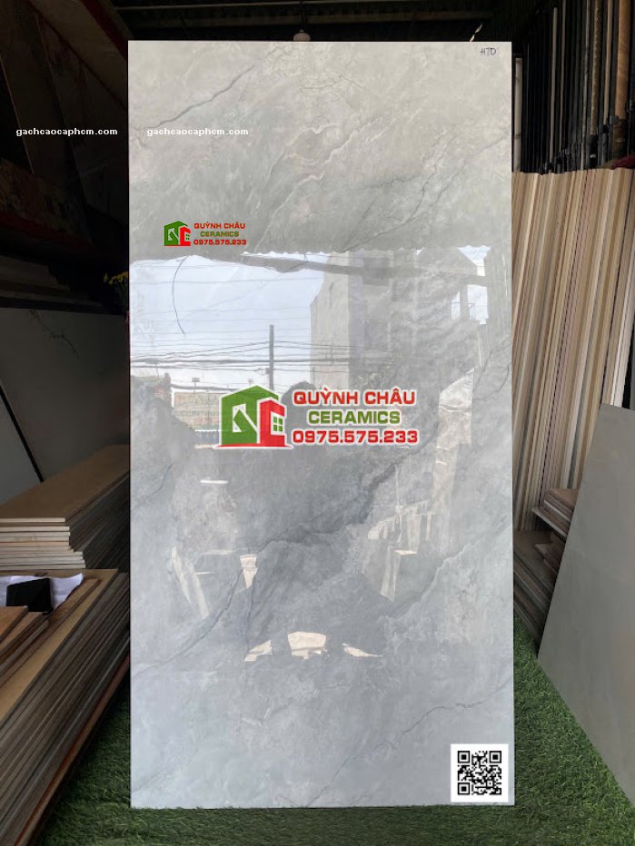 Bề mặt Bóng Kính Xám Vân Đá: Lớp men siêu bóng (Polished) không chỉ mang lại vẻ đẹp lộng lẫy, phản chiếu ánh sáng giúp không gian trở nên sáng sủa, sang trọng mà còn dễ dàng vệ sinh, lau chùi. Tông màu xám vân đá trung tính, thanh lịch, dễ dàng kết hợp với nhiều phong cách nội thất, từ hiện đại đến tân cổ điển.
